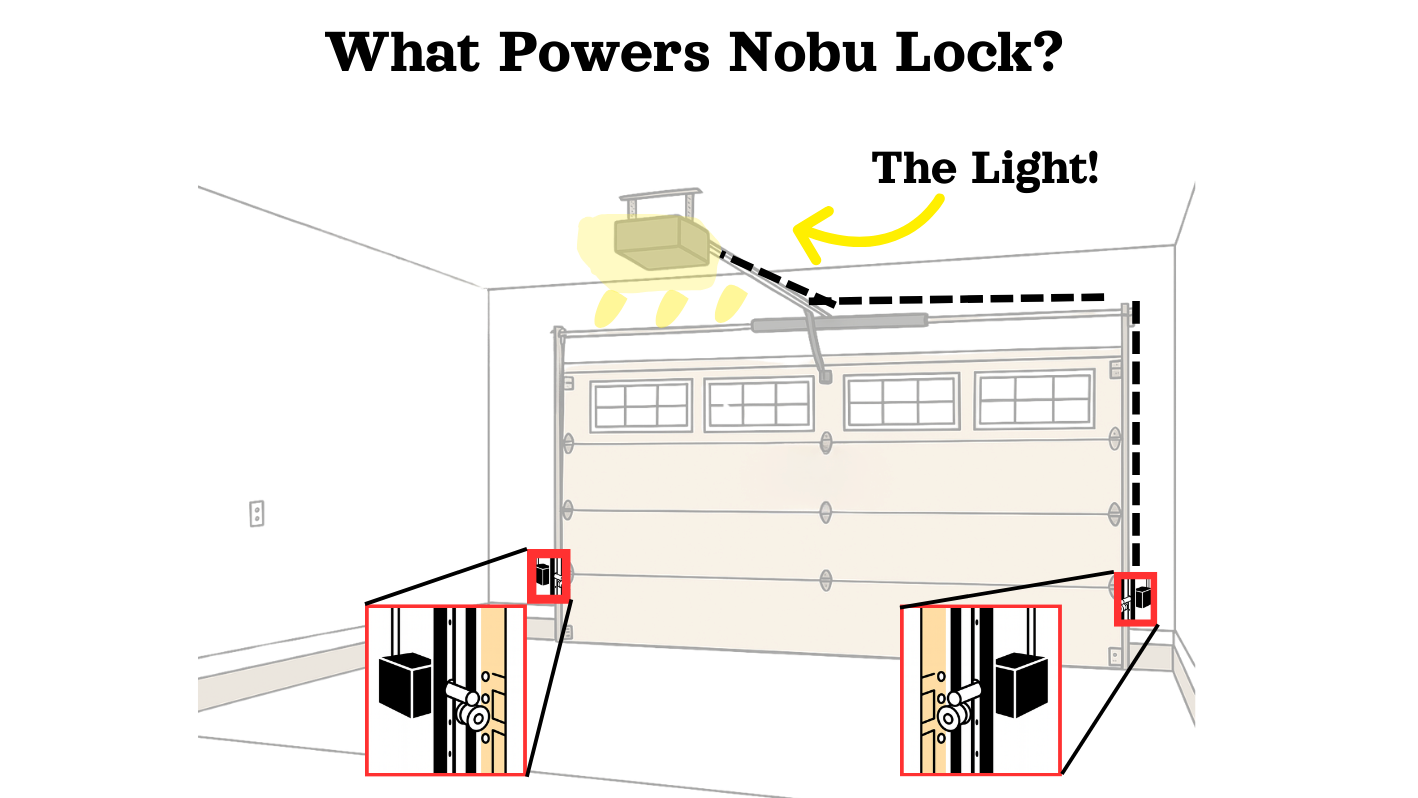 Nobu's patented design installs into the lightbulb. This ensures that when your garage works so does Nobu Lock.